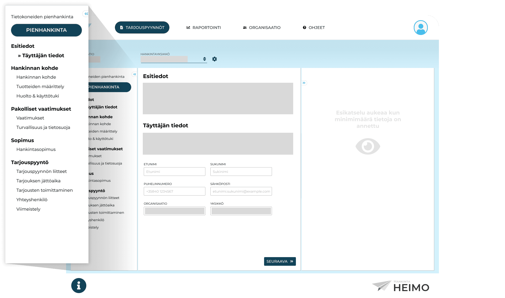 Käyttäjätuki: HankintaHeimo tukee käyttäjää koko tarjouspyynnön valmistelun ajan.